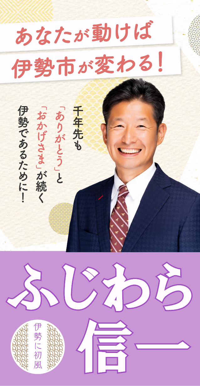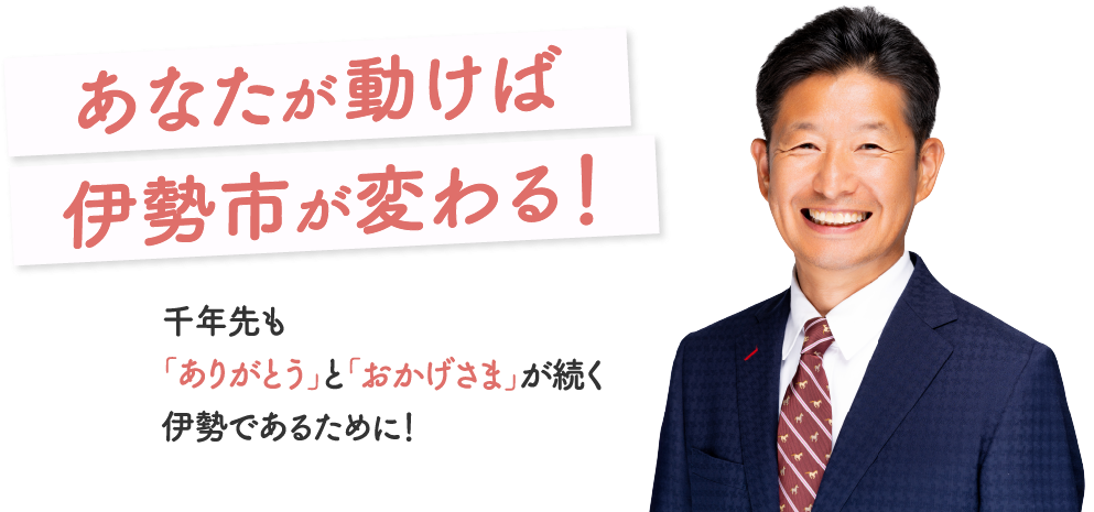 伊勢で生まれ育ったからこそ、このまちの心意気を大切にしたまちづくりを進めてまいります。